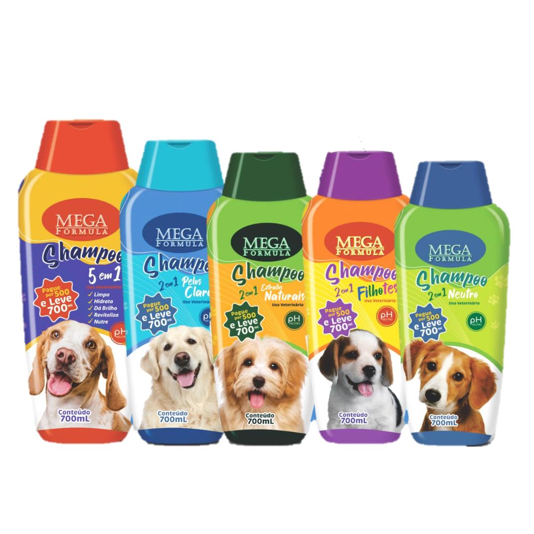 O Shampoo 5 em 1 Mega foi desenvolvido para cães e gatos.